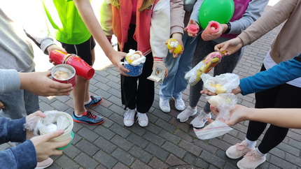 Na długiej przerwie sprzedawali pyszne i ciepłe gofry z przeróżnymi dodatkami. Zainteresowanie było przeogromne. W całej szkole unosił się słodki zapach, który kusił zarówno młodszych jak i starszych. Z naszej akcji udało się uzbierać kwotę 450zł, która zostanie przekazana na rzecz Ukrainy.
